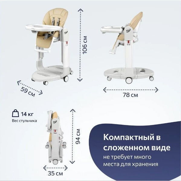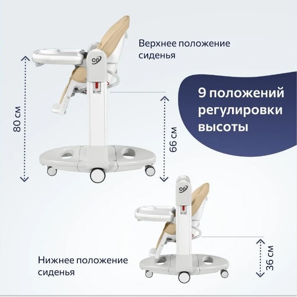 Практичный, уютный стул подойдет для детей от 0 до 3-х лет. К ножкам стульчика прикреплены маневренные бесшумные колесики. Возможность регулировки спинки и сиденья под рост и потребности малыша. Ширина ножек стульчика не позволят ему упасть на бок даже при максимальной нагрузке. Одним движением руки можно превратить в удобный шезлонг или кресло-качели.